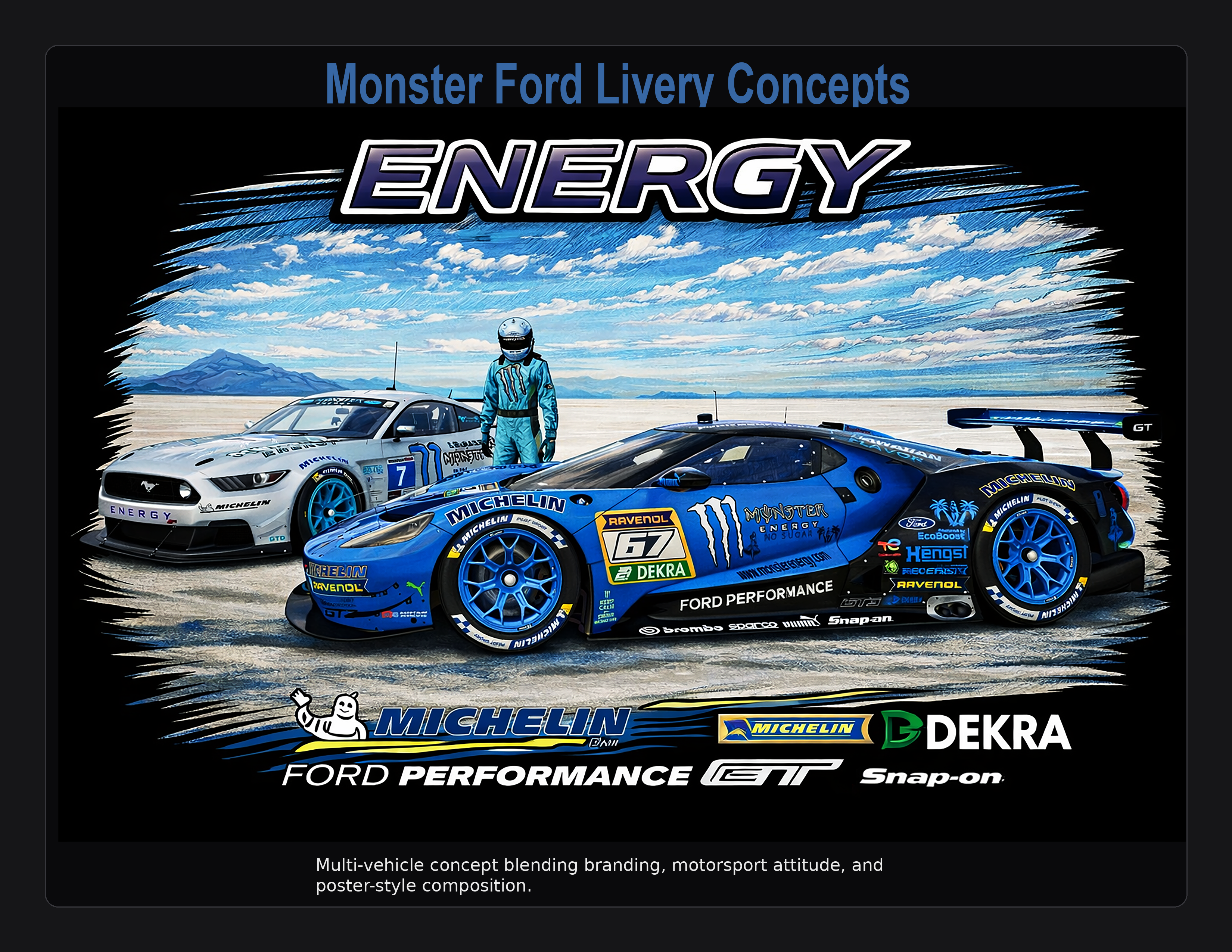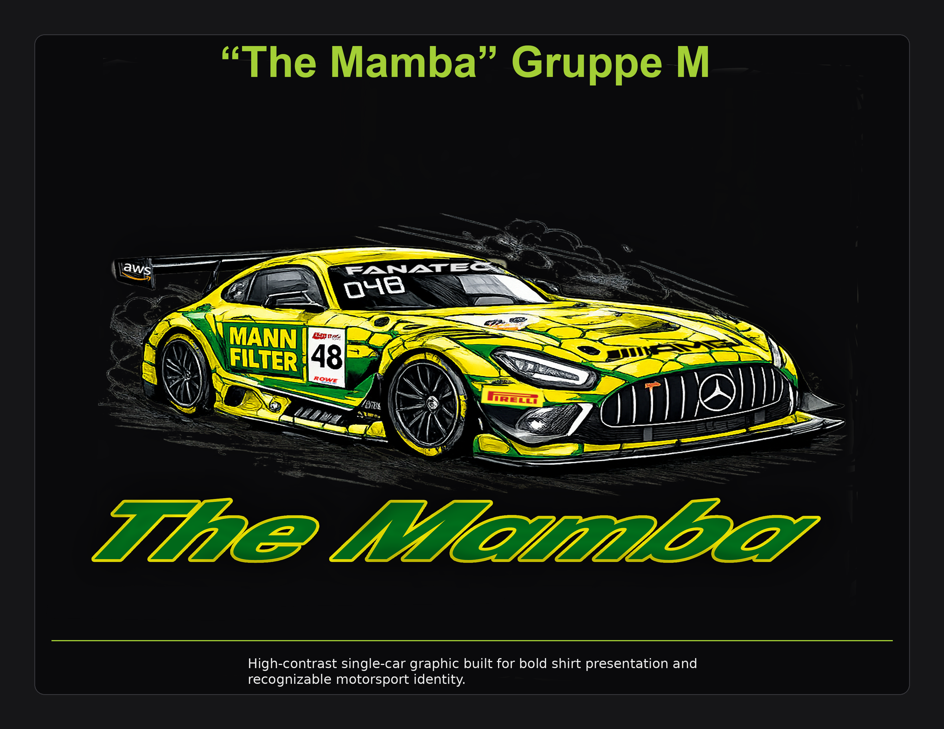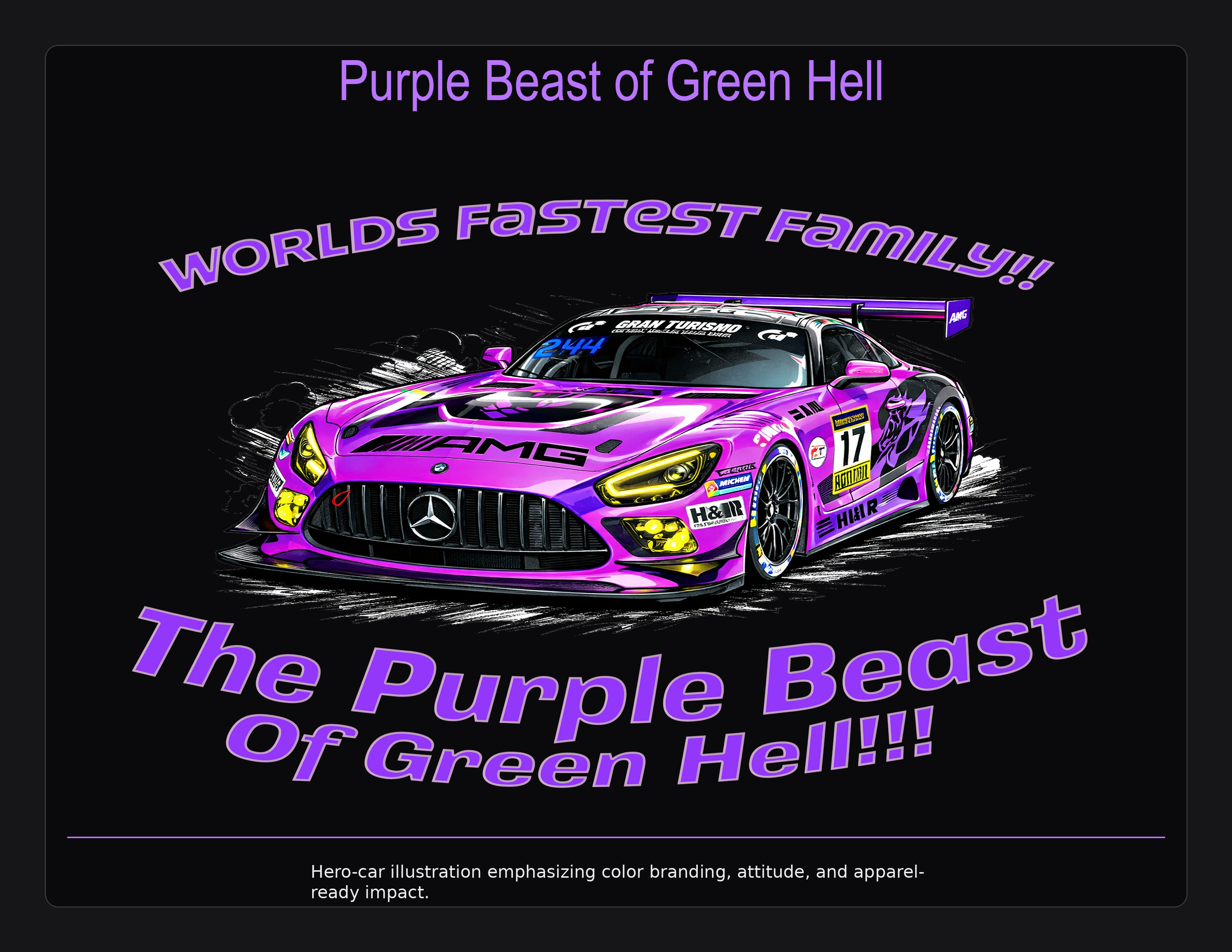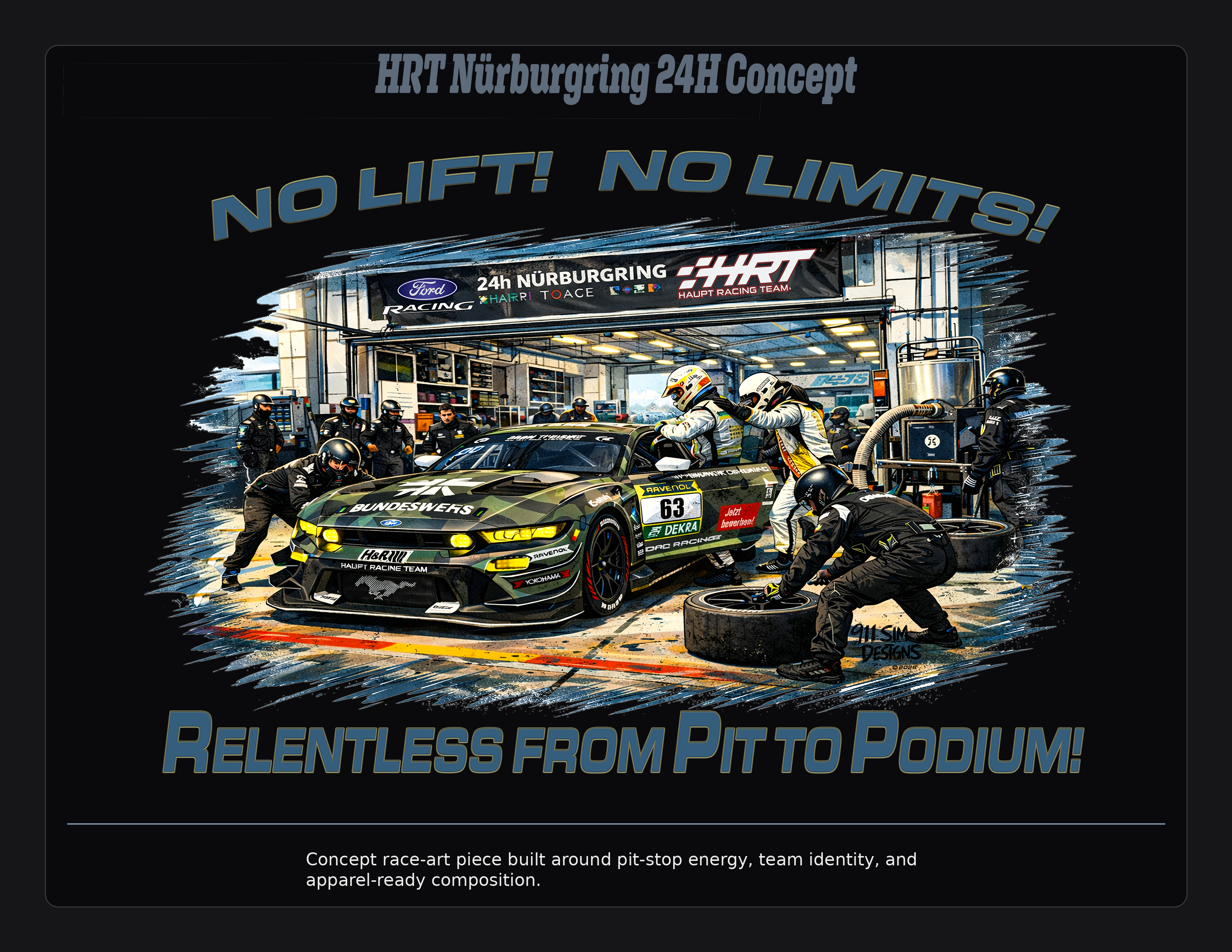 Premium race-inspired artwork for apparel graphics, commemorative prints, pit-lane scenes, branded visuals, sponsor presentation, and collector display pieces — built to hit hard and look elite.